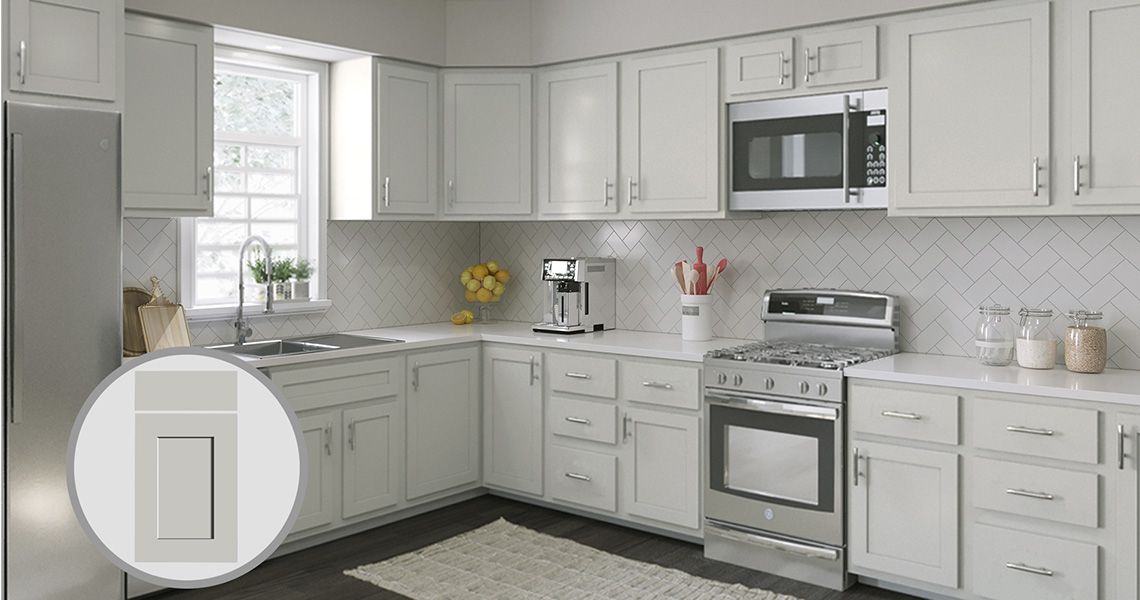 Mist: This lighter grey tone contemporary look is available in Shaker Classic, Slab and Fusion Shaker.